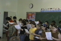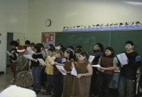 The grade fives and sixes put on a birthday party for Jesus. Both grades worked very hard for about 2 weeks in the preparation. Together it was decided who did what and who brought what. Everyone brought food and there was plenty. There was a beautiful cake for Se'sus. Students wrote invitations to important people in their lives other than parents. Some picked godparents, uncles, aunts or grandparents. Students made or brought gifts for the Giveaway. Students took part in setting up and cleaning afterwards.