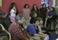 Falon Stevens was the M.C. for the birthday party. She started with the Our Father in Mi'kmaq asking everyone to join in. She welcomed them for coming and briefly went over the program. The cake was lit by Mulch Paul.